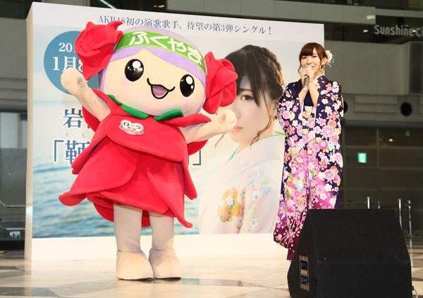 また、このイベントで「福山・鞆の浦応援特別大使」にも任命。福山市を代表するバラのイメージキャラクター“ローラ”ちゃんが応援に駆けつけ、ステージ上で任命とタスキの贈呈式が行われ、ローラちゃんからタスキを掛けてもらった。“わさみん”の愛称で知られる岩佐からは、タスキを掛けてもらったお返しにと、“わさみん 鞆の浦慕情応援隊長”と書いたタスキをプレゼントした。「鞆の浦のよさとか美しさを、この曲とともに全国にPRしていきたいなと思います」と意気込みを語り、バラのまちとしても知られる福山に引っかけて「私は今月30日で19歳になるんですが、10代最後の2014年は、少しずつ大人の女性になれるように、バラのように美しいけれどトゲがあるみたいな大人の女性になれるように頑張ります」バークスさんの記事より引用