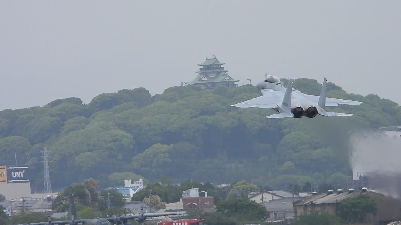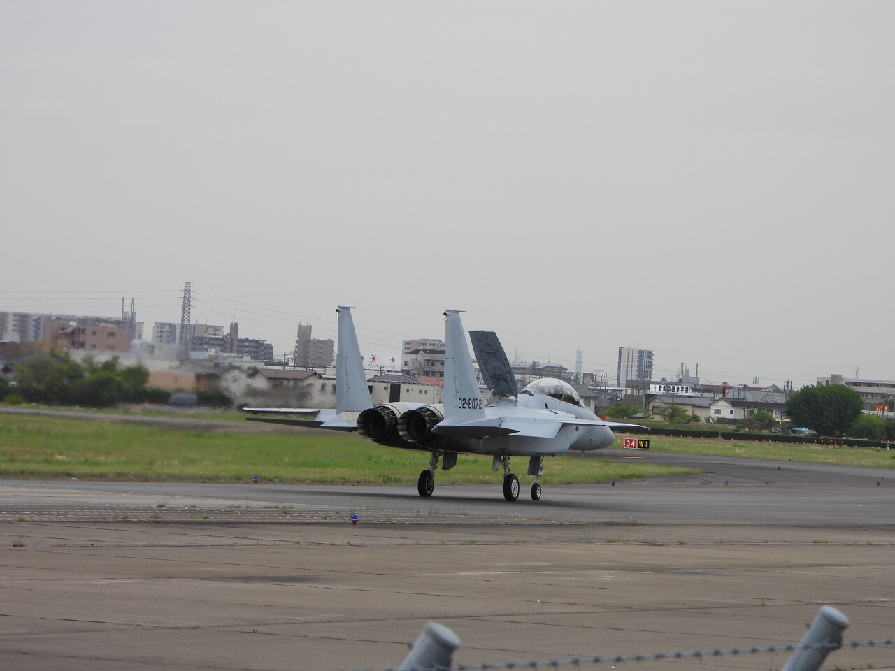 F-15DJ ×2お帰り離陸,パイロット搬送の8055期はAB点火で派手に上がりました NKM