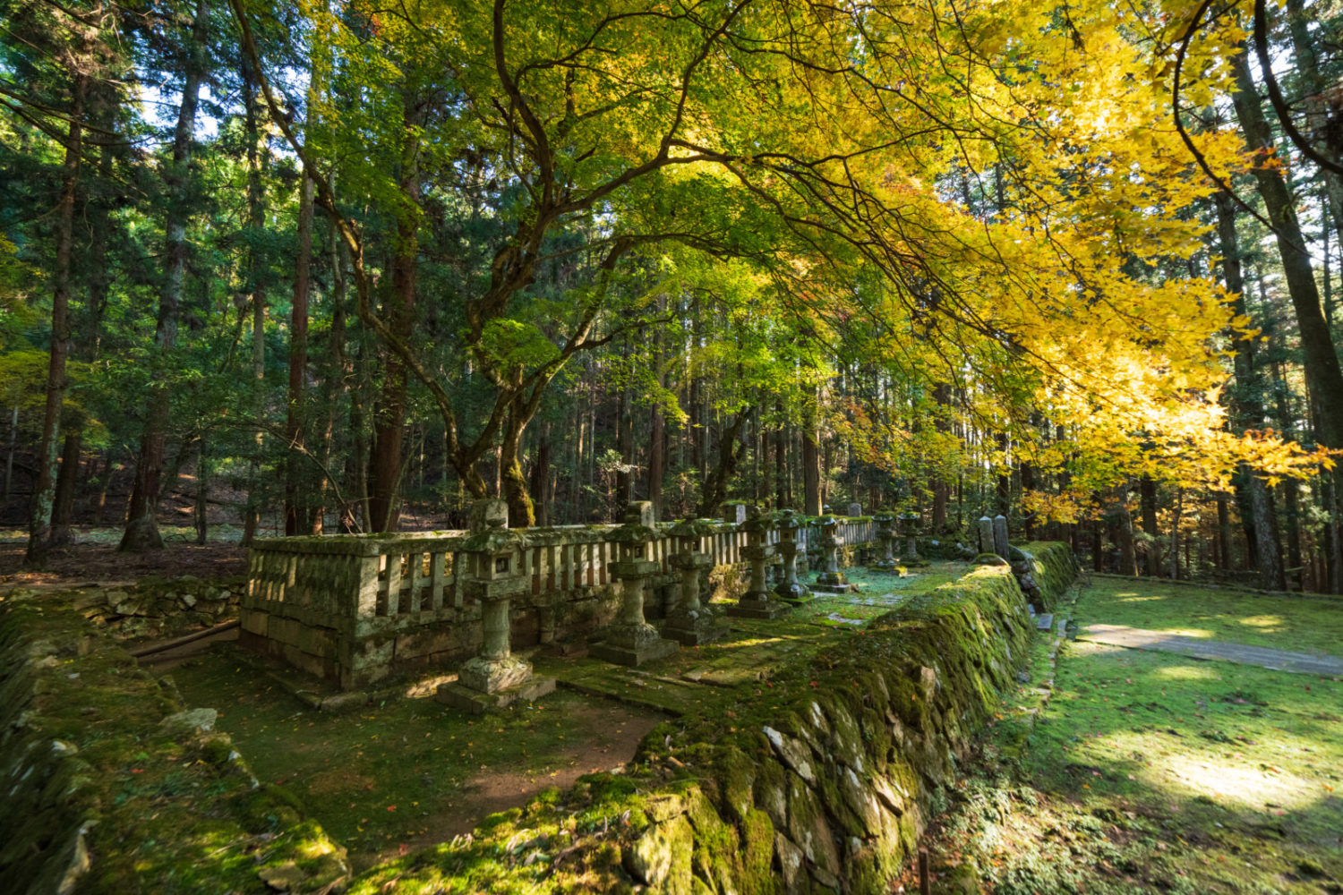 鳥居をくぐり、元就や一族の墓所などがある参道を歩きます。