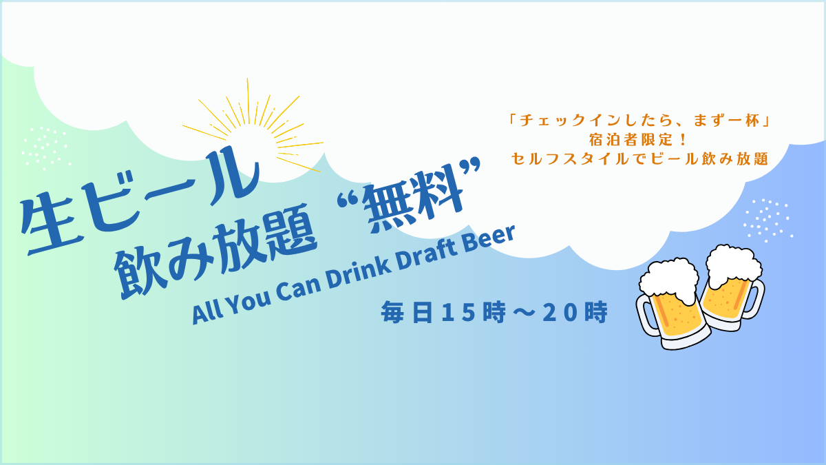 飲み放題の生ビールと、フリードリングのコーヒーを持って部屋へ。