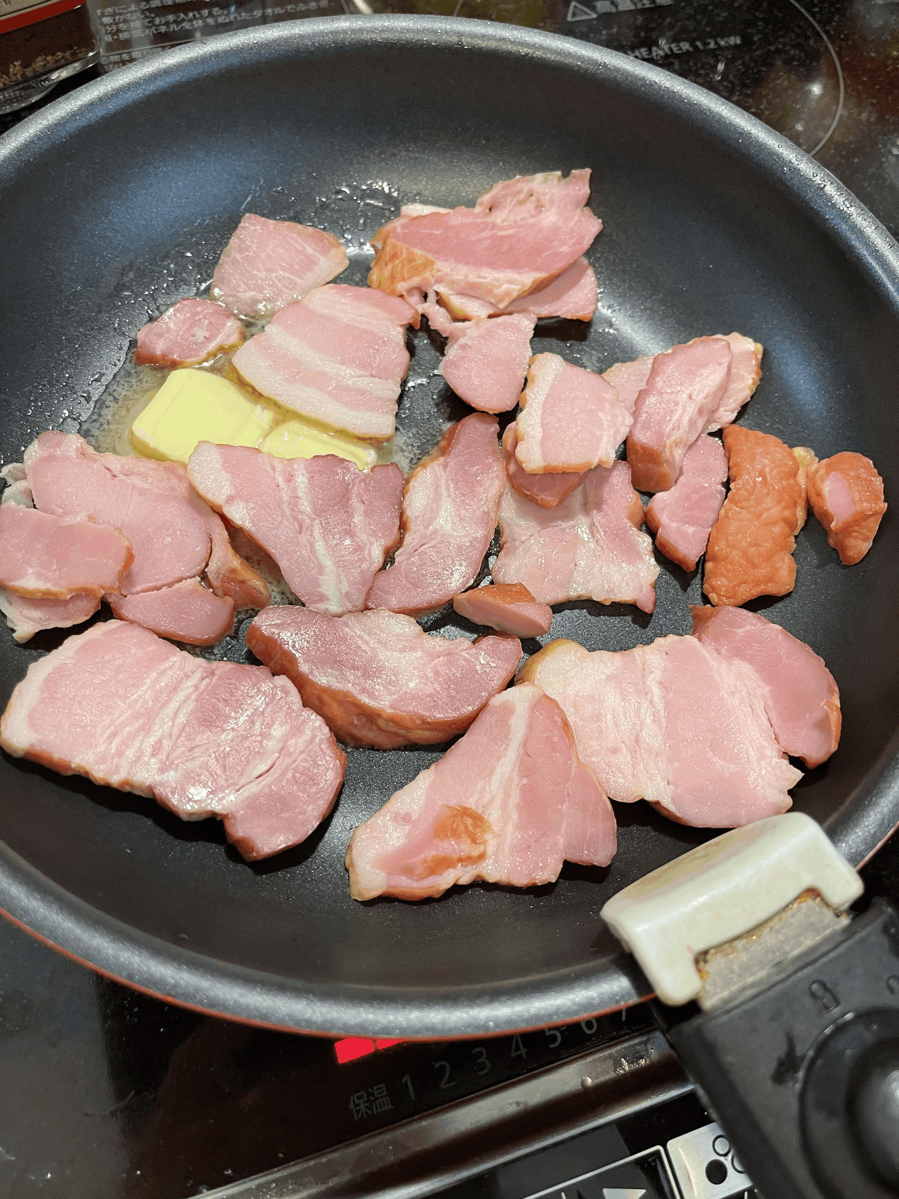 だってベーコンをバターで炒めてるんですよ。罪深すぎませんか。