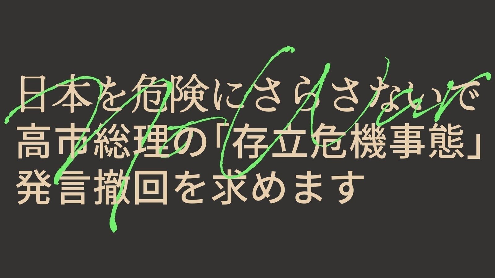 【台湾有事発言】謝罪と撤回を! #高市首相 による#台湾有事発言 により中国が軍民共用品の輸出規制を行い、レアアースも輸入できなくなってきてハイテク産業がダメージを受けている。壊滅的な事態になる前に台湾有事発言を謝罪し、撤回すべきである YouTube作成した動画を友だち、家族、世界と共有。studio.youtube.com NO WAR/高市首相の「存立危機事態」発言の撤回を求めます #高市総理の発言撤回を求めます オンライン署名に賛同お願いしますあなたの声がチカラになります。賛同して、変化を起こす一員になりませんか?c.org