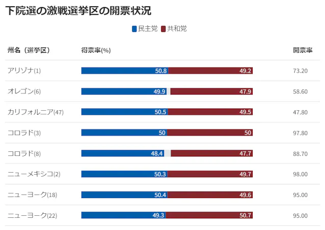 アリゾナ州マリコパ郡はこの1時間で約1万9千人が投票。投票率に変動はないが、 共和党支持者の数が民主党支持者に対して4倍以上。投票機のトラブルが起きて、投票せずに帰った人がいるようだが、投票した人は圧倒的に共和党。