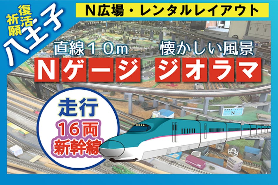2022年より、Nゲージ、ジオラマ、ミニチュアをテーマとした施設を作りたいと集まり、定期的に構想を話し合って来ました。そんな時に、八王子市の高尾山の麓で18年間営業されたNゲージレンタルレイアウト「八王子N広場」が閉店するというニュースが飛び込んで来ました。