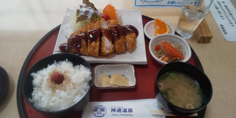 日替わり(とんかつ定食)+入浴料セットで1700円でした。