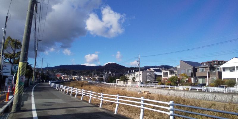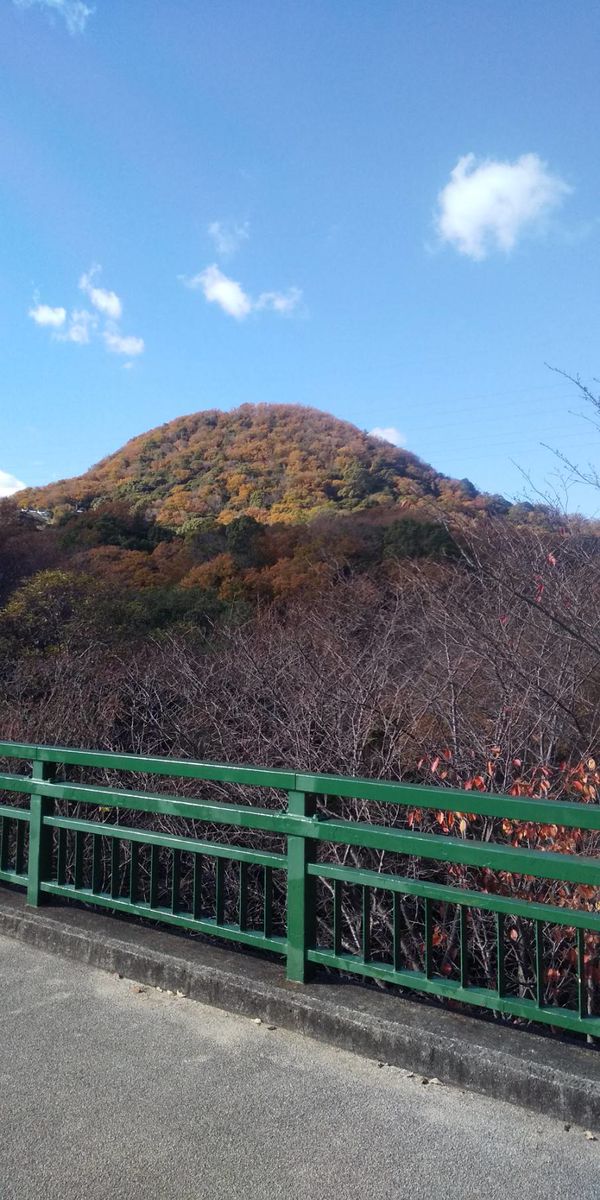 あのお山だけど、ここから見ると六甲山と一緒になって、こんもりした形が見えにくい。