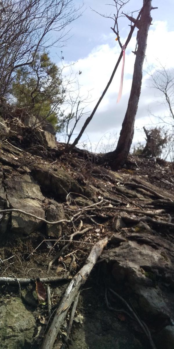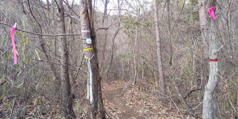 ■八王子神社から宰相ヶ岳のルート(左下~左上)は険しい山道だけど目印リボンが随所についているので安心して登れました。
