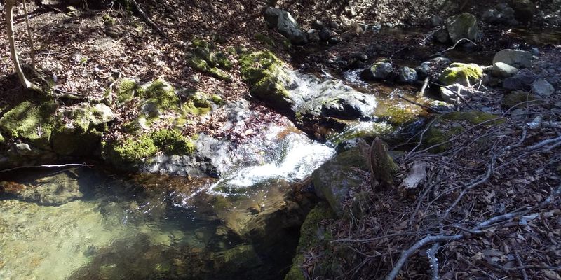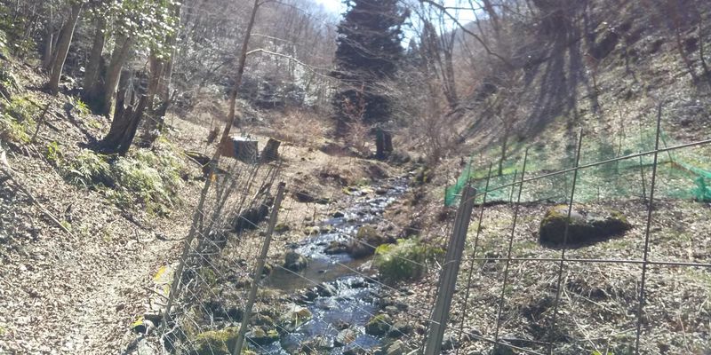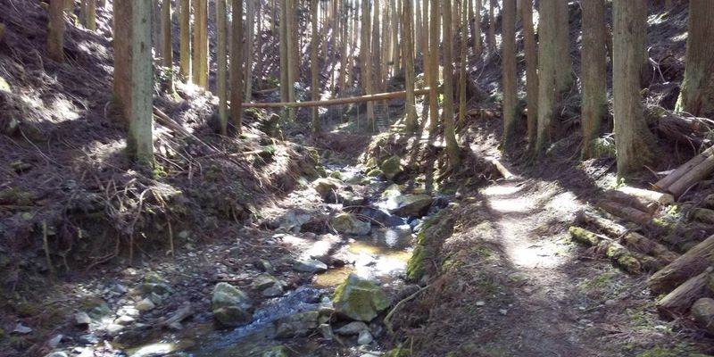 小川を何度もあっちへ渡りこっちへ渡りします。