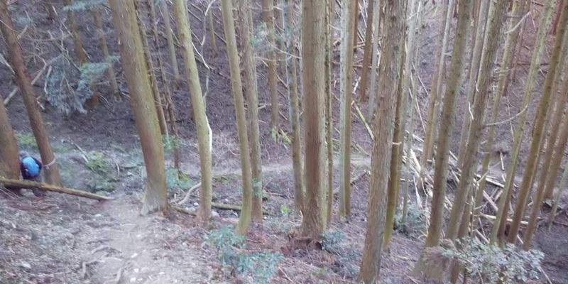 険しい下山道に、まだかなあ~と思い始めた頃…