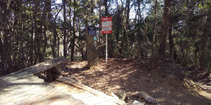 スタート地点からカクッと曲がっている最初の所が大原野森林公園入口、次にカクッと曲がっているのが福寿草エリアへの尾根登りです。