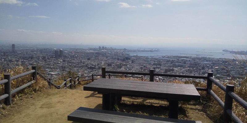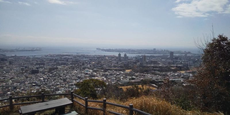 芦屋ロックガーデン上の展望台(電線あり)と高度が同じっぽい。