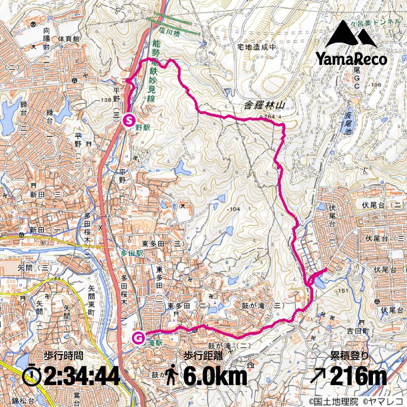 平野駅~三ツ矢サイダー跡~シャラリン山~伏尾台~鼓が滝駅