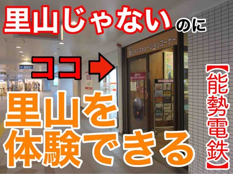 (1)名 称 「のせでん里山インフォメーションコーナー」 (2)場 所 川西能勢口駅 東口構外コンコース(約37㎡) (3)内 容 のせでん里山案内、北摂里山案内、里山関係の案内・展示(台場クヌギ等) (4)運営形態 自由に出入りできる無人コーナー 開設時間は10時~17時(無休)