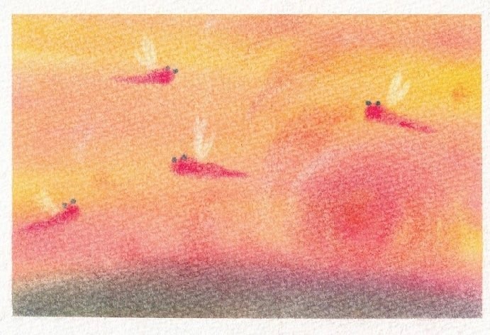 赤、青、黄色の3色で描く