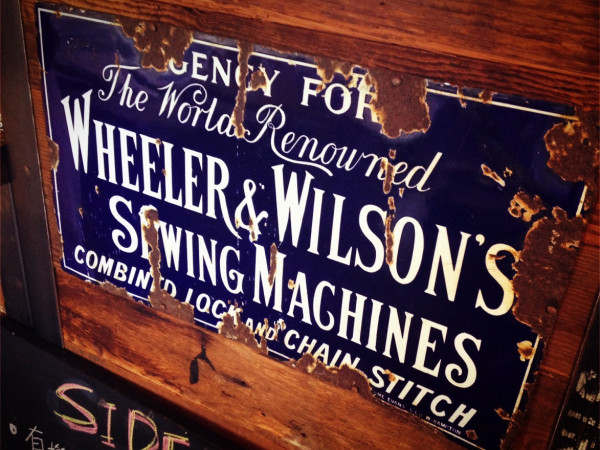 レジに貼られたブリキのクラシカルな看板。