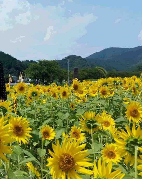 ビタミンカラーの向日葵畑無料でお持ち帰り❣️昨年、向日葵畑に行きました。ちょうど、イベント日で、トウモロコシやらカキ氷などの出店が。私はお花の中では向日葵🌻が1番大好き😘なんですよね。人出が多く、残り少なくなってましたが、向日葵が無料でお持ち帰りできるってことで、向日葵畑に分け入って、綺麗なのを結構沢山お持ち帰りしてきました❣️向日葵のビタミンカラーは元気をくれて、かなり長持ちしましたよ🌻