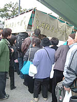 弘法さん “弘法さん”とは、弘法大師(空海)の命日にあたる毎月21日に開催される、東寺の縁日のこと。 広い境内に骨董やアクセサリーの露店が並び、その数はざっと1200店だそう。 「厄除けきんつば」なる何とも縁起の良さそうなお店に行列が。迷わず並んだのですが・・・。