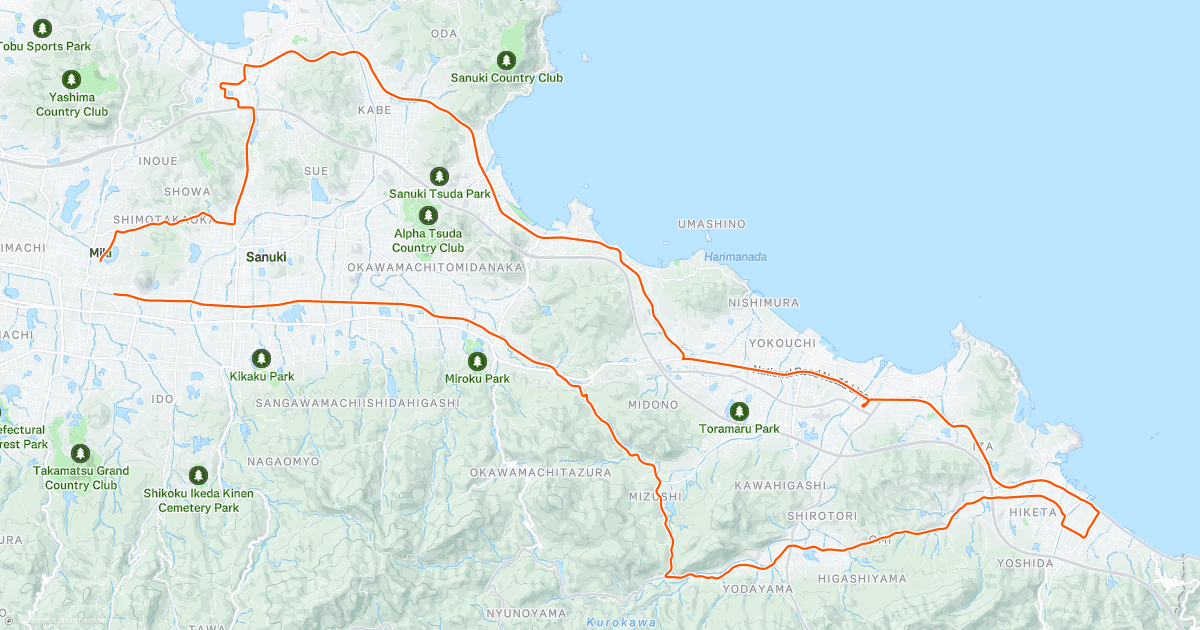 予定では高松市内方面まで大回りして帰るつもりだったけど、R11をひたすら西向いて走るだけ=常時向かい風なんで、ぶっちゃけ飽きたw