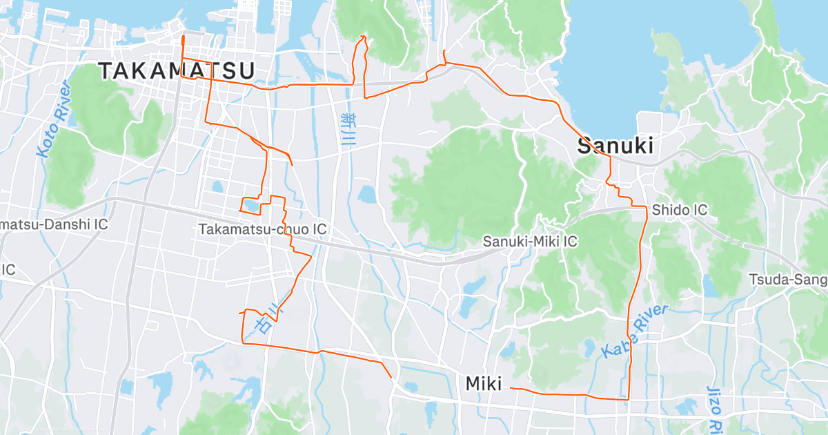 (30㎞ちょっとの予定が、ポイ活(ジオクエ)で欲張ってたら、気づくと50㎞オーバー…)