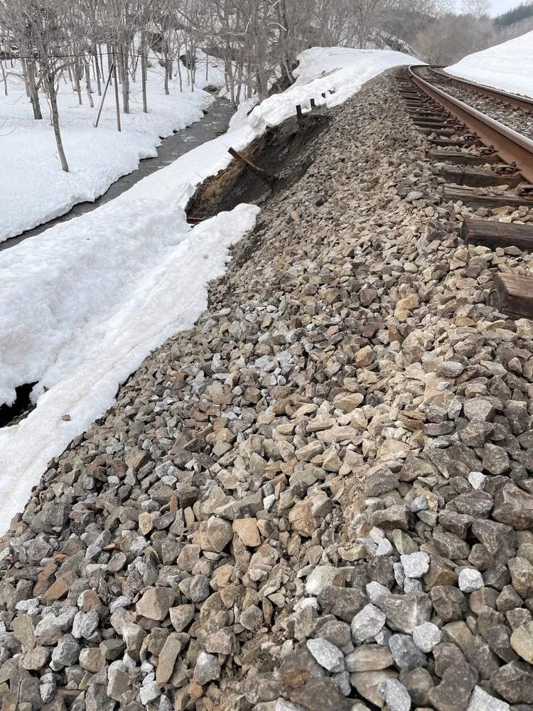 JR函館線・長万部-蘭越、当面運休 盛土崩落で復旧見通し立たず:北海道新聞デジタル【黒松内、蘭越】線路脇の盛土が崩れ、不通となっているJR函館線長万部駅(渡島管内長万部町)-蘭越駅(後志管内蘭越町)間について、JR北海道は1日、2日以降も当面の間、同区間の運行を休止すると発表した。...www.hokkaido-np.co.jp
