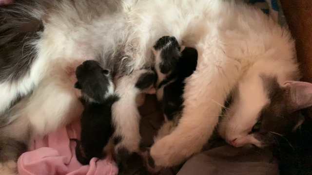 生後4日目の赤ちやんネコがかわいいよ〜〜