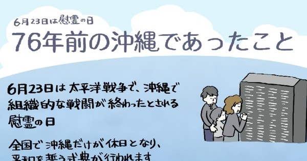 6月23日は慰霊の日 76年前の沖縄であったこと【NEWS グラフィティ】 - LINE NEWS6月23日は慰霊の日。全国で唯一沖縄だけが休日となります。76年前に何があったのか、まとめました。参列者は30人程度、首相も参列せず(時事通信)令和3年沖縄全戦没者追悼式の開催について(沖縄県lin.ee