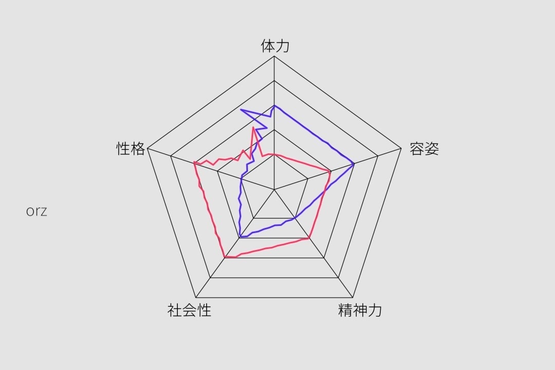 うまいことレーダーチャートにしたかったのですがちょっと難しかった。