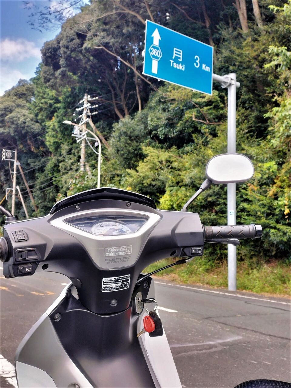 ミニツーリングの最後は、船明隧道のわきにある「月 3km」の標識を観に行きました。