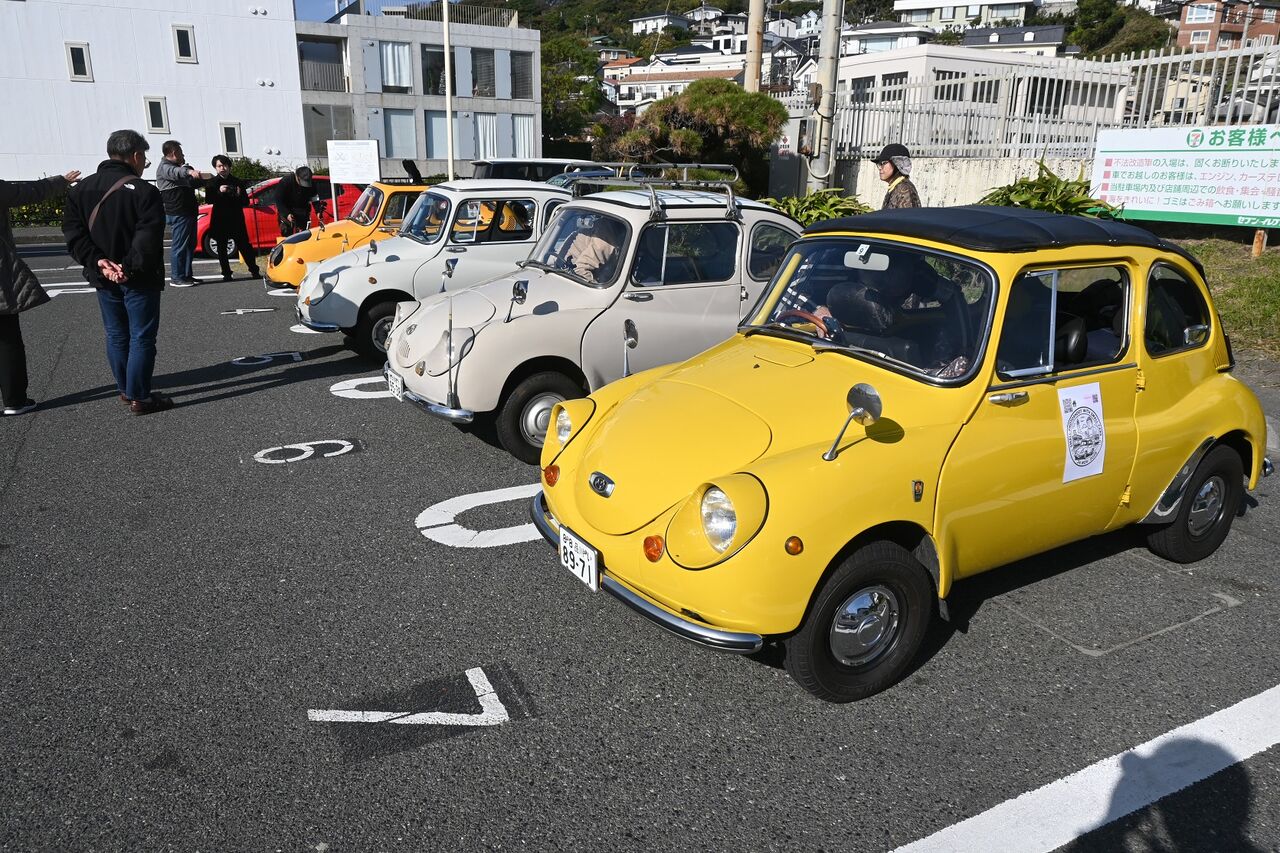 海岸のセブンでプチミーティングのスバル360の皆さん。