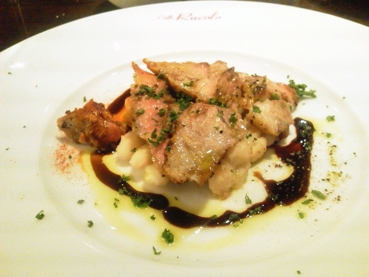 茶美豚肩ロース肉のグリル 白インゲン豆の煮込み添え バルサミコソース