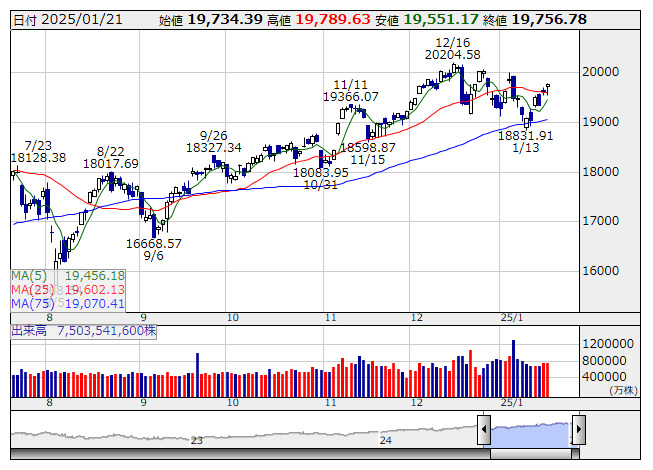 米国株高を材料に東京市場は買い優勢で取引を開始。日経平均は前日高値を上回ってスタートした後はじりじりと上げ幅を拡大し39600円台まで上昇した。為替は1ドル155円台半ばと目立った動きは観測されなかったが、トランプ大統領による経済政策への期待感の高まりを背景に大型株を中心に上げ幅を広げる展開に。日経平均は後場一段高となる場面も見られ、本日の高値圏で取引を終えた。