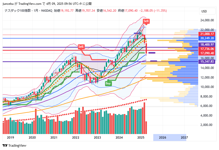 | ナスダック総合指数 | 15267.91 | -335.35 | -2.15% |