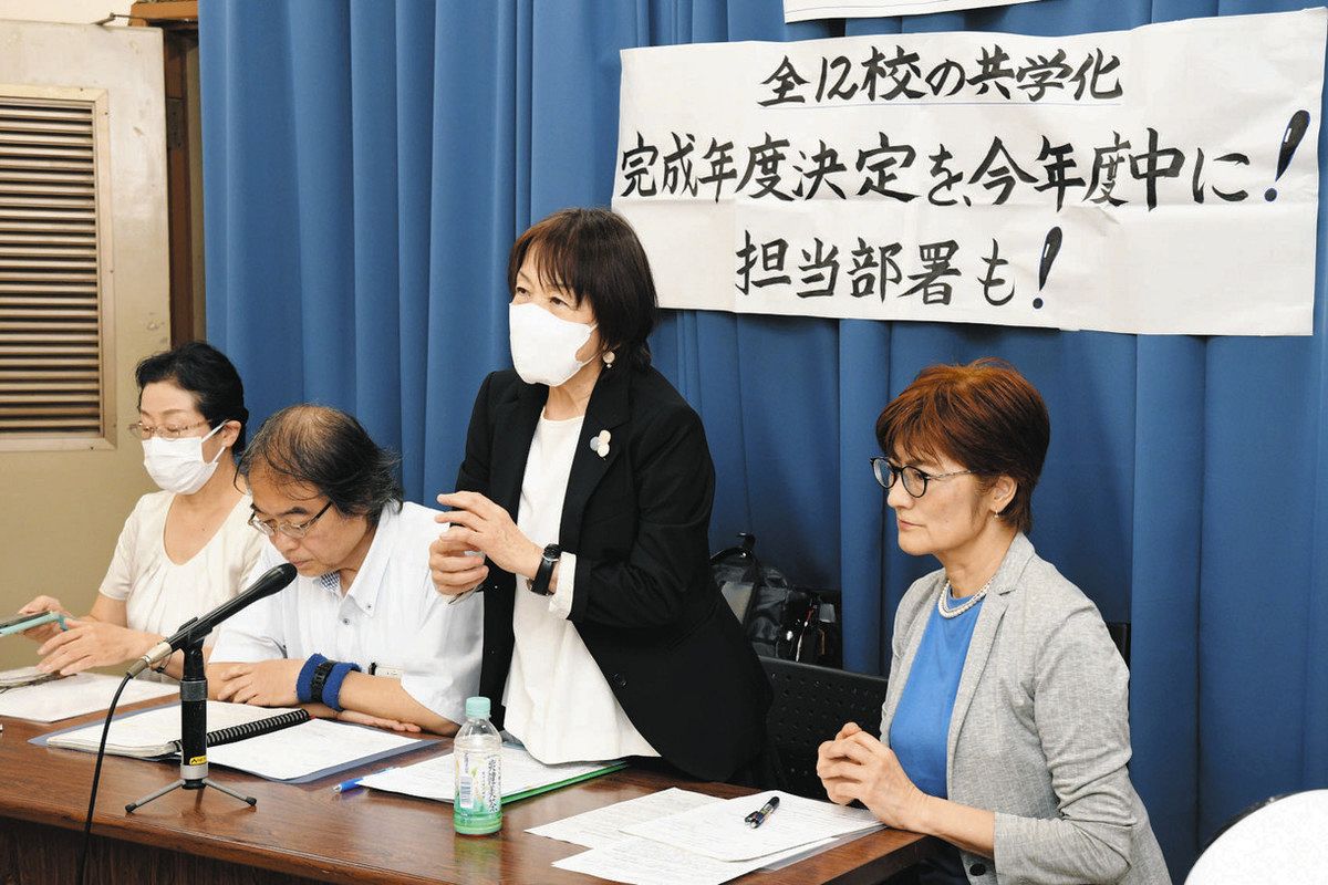埼玉県立高校の男女共学化を支持する市民団体「共学ネット・さいたま」が25日、共学化を具体的に進めるよう求める要望書を県教育委員会に提出しました。