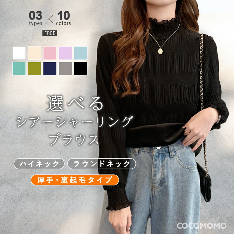 【10/30!クーポンで1,600円~】 ブラウス シフォン シャーリング シアー トップス シアートップス レイヤード 長袖 レディース タートル ハイネック クルーネック フリル シャツ 裏起毛 厚手 裏地付き 薄手 体型カバー インナー オフィスカジュアル 秋冬 秋 冬 cocomomo楽天市場${EVENT_LABEL_01_TEXT}