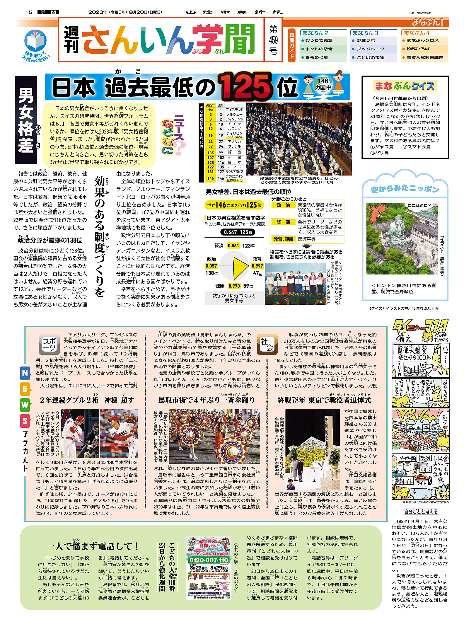 しかし、子供向けの新聞でも男女格差は普通に記事にあります。