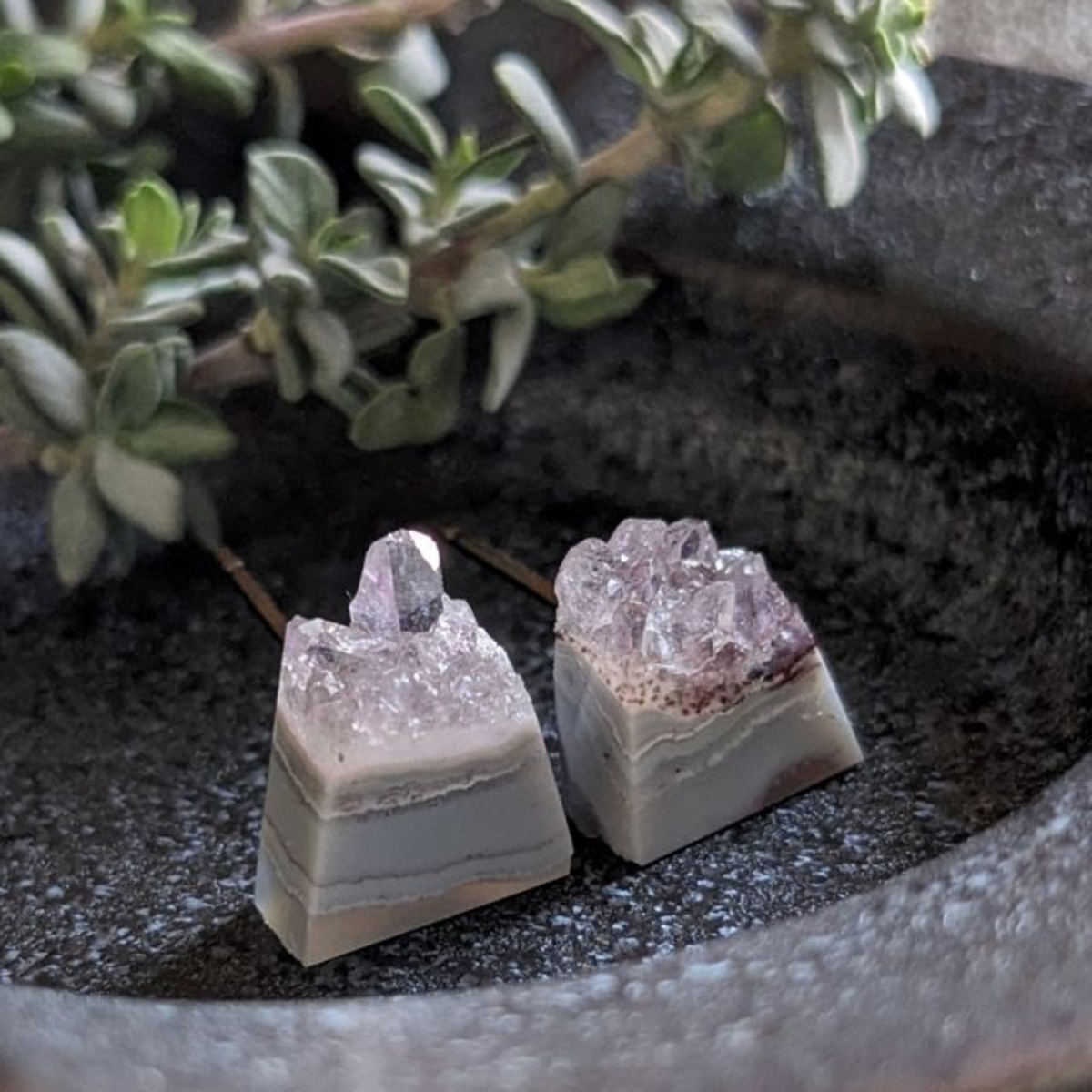 結晶の晶出しているメノウのピアスです。