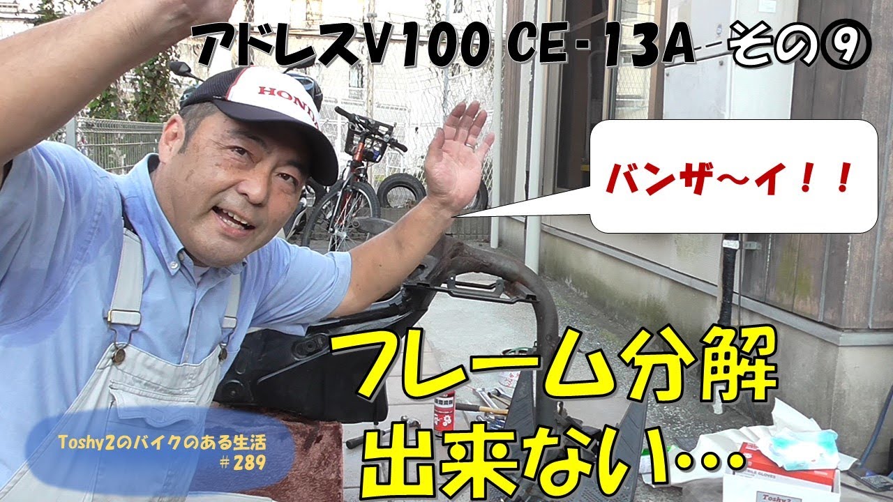#290 二代目アドレスV100のレストア⑩フレーム分解 出来たぜ!ドハマりでストップしていたアドレスV100フレーム分解、かなり乱暴な方法でしたが、なんとかクリアできました。これであとは一つ一つ作業を進めていけます。youtu.be
