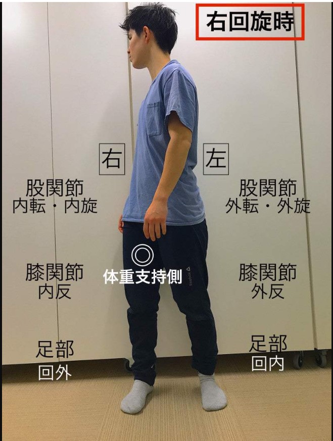 例:「静止立位でCoPが踵寄りに移動している状態を観察。」