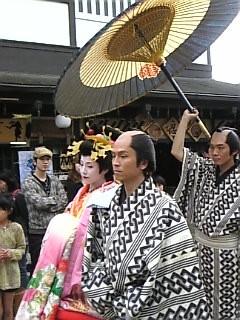 帰ろうとしたら、ちょうど花魁道中に遭遇したので、写真とってきました。