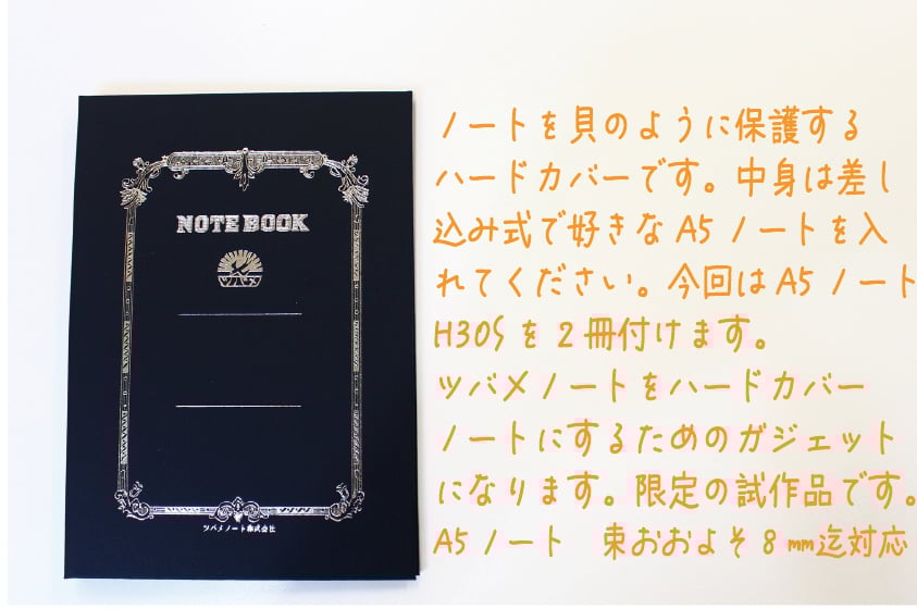 「ノートブックシェル」(固めのノートカバーと思っていただければ~)と「つばめ観察ノート(A5)」です。