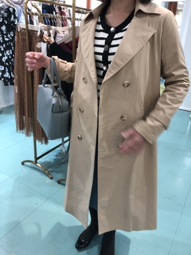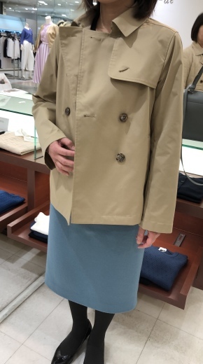 きれいめに着れるスプリングコート。お似合いだけど子育て中のママには使いにくいかな〜?!