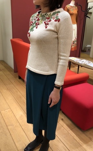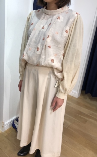 トップスは、アイボリーに華やかな刺繍で、これ一枚でかなりレベルアップしたオシャレになります。
