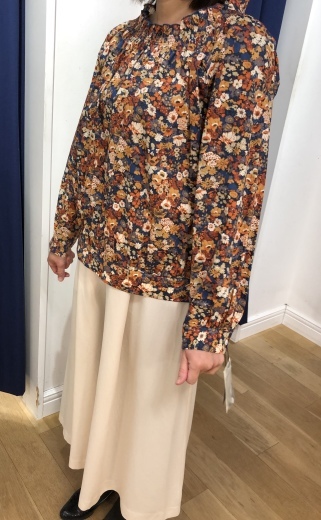 リバティのブラウスは、黄緑色の方がお顔映りが良かったです。インにして着られた方がよりオシャレに見えました。