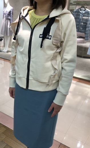 かなりオシャレなアイボリーのパーカーは、カジュアルな中にもエレガントさがありました。