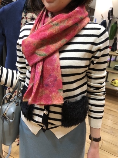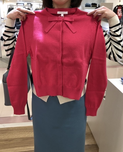 カーディガンは、首まわりにリバティのフリルがあって、ボタンがたくさん付いてるデザインが春らしくてキュートでした。