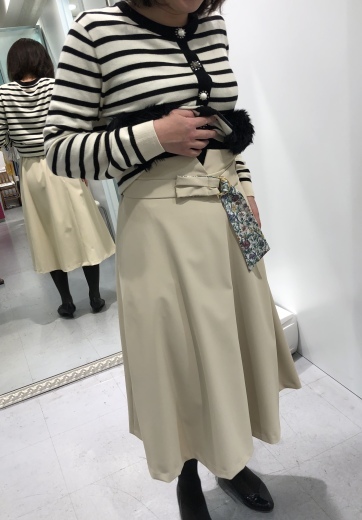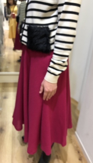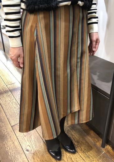 今年流行りそうなストライプのスカート。型的にもストライプということもあって、痩せ効果抜群です。