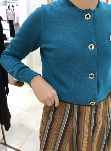 Sさん大好きなターコイズブルーにゴールドの飾りが付いているカーディガンです。