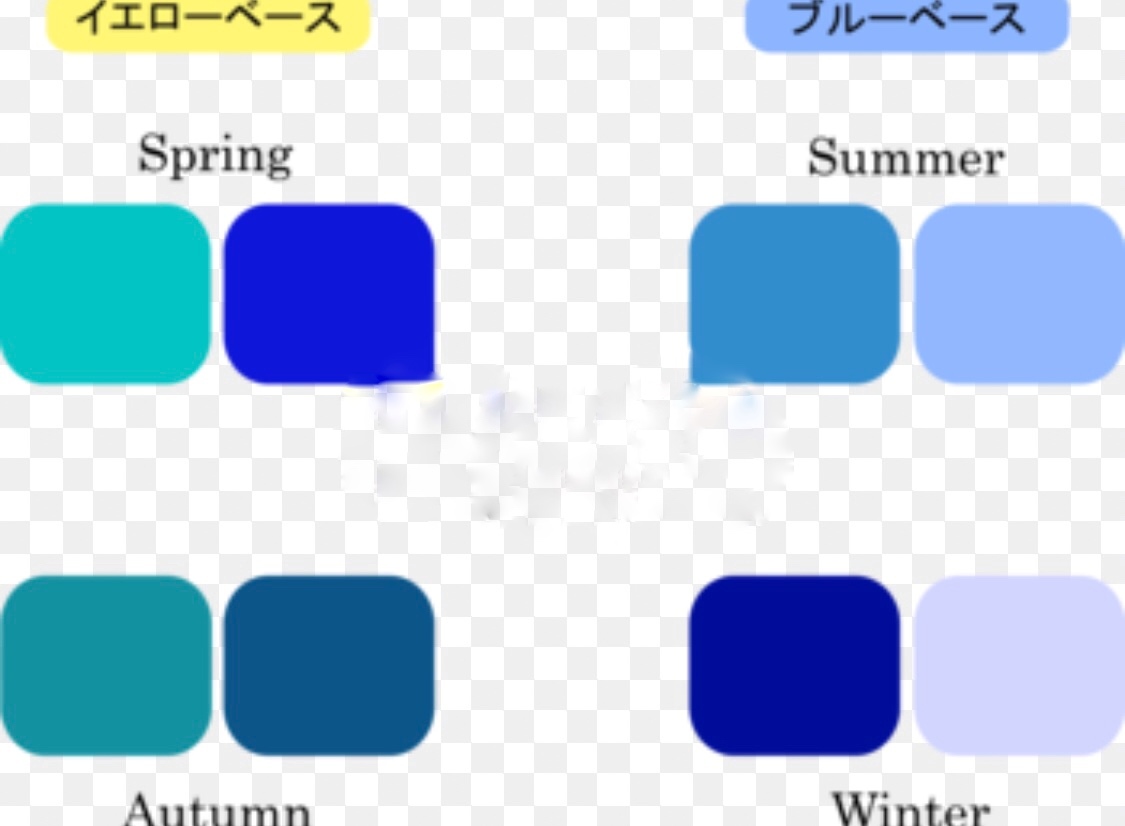 ブルーベース(ウインター&サマー)のブルーとイエローベース(スプリング&オータム)のブルーの違いです。イエローベースの方はブルーは着れないと思ってる方多いのですが、お似合いのブルーはあります。