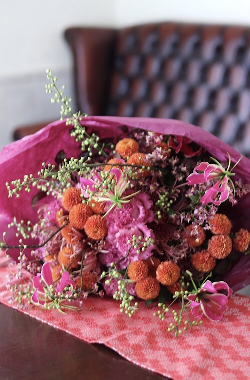 今日はそのライブで谷口さんが束ねられた豪華なお正月ブーケが朝一番で届きました。