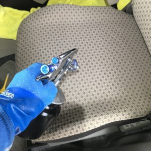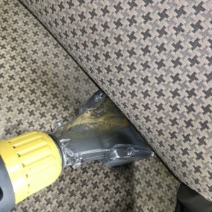 分解された汚れや臭い成分を専用機材で回収してすすぎ洗いするのですが、背もたれと座面の接点あたりには・・・隠れ汚れが潜んでました。こちらも同様にクリーニングしちゃいます